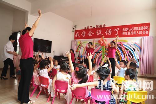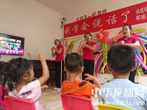 家长如此开朗,孩子们的世界肯定会更加阳光。记者随着郸城县残联理事长杨瑞林和聋儿语训中心主任邵莉娜来到了二楼聋儿语训学习班。“我学会说话了”,大爱至简,教学班里仅此一句标语,墙上是一面镜子,镜子上贴满了老师和孩子们一起做的彩气球,旁边是一架钢琴,4位语训老师正在张着大口(说话标准口形)、动作夸张地给孩子上听力课,老师边弹琴,边做手指舞、跳少儿舞,孩子们慢慢听、慢慢模仿、慢慢张口咿呀跟着唱……