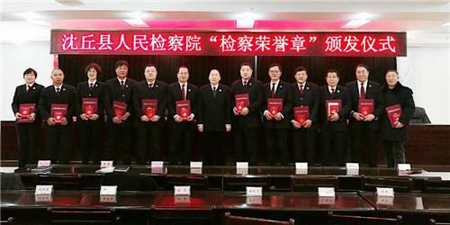 1月14日,沈丘县人民检察院举行从检30年检察荣誉勋章颁发仪式,向从检满30年的25位老领导、老同志和在职干警致敬,感谢他们在检察机关恢复重建40周年以来,为沈丘检察事业做出的突出贡献,并通过回顾建院以来的心路历程,进一步增强全体检察人员追求卓越、争创一流的信心和决心。