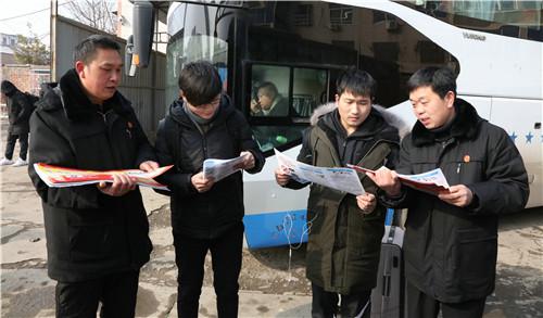 图为2月11日,该院法官在车站为外出务工人员发放并讲解法律宣传资料。