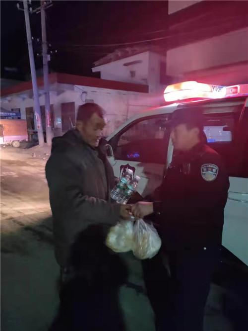 同时,王克琛安排辅警高旭阳去镇上为老人准备一些饭菜和矿泉水,然后带领辅警高旭阳、王永涛开车赶往现场。到达现场后,见到老人衣着单薄,头发蓬乱,满脸污垢,王克琛立即为老人送上准备好的饭菜,老人接过饭菜满含泪水对指导员王克琛不停地说:“到家了,到家了,谢谢你们”。