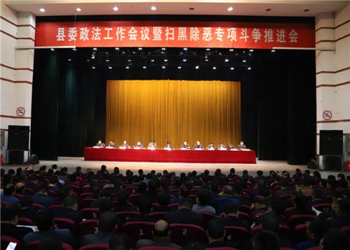 县委副书记、政法委书记崔卫国总结了2018年政法工作,分析了当前工作形势,就做好2019年政法工作进行全面安排部署。县委常委、组织部长侯磊宣读了市委《关于表彰2018年度全市信访维稳工作先进单位及个人的决定》。县委常委、纪委书记、监委主任胡友涛传达了全市扫黑除恶专项斗争推进会精神,全面安排部署了“破网打伞”工作。县政府党组成员张仁杰宣读了县委、县政府《关于表彰2018年度政法工作暨扫黑除恶专项斗争工作先进集体的决定》。会议对平安建设等先进乡镇和先进单位进行了表彰。