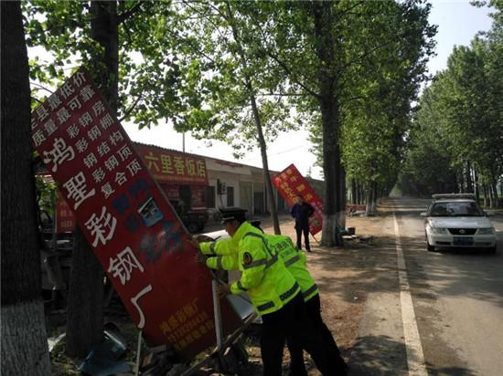一是对机高速南连接线和五条县道进行不间断洒水清扫,助推周口“创卫”工作。二是出动宣传车辆20多辆次、执法人员70多人次,悬挂条幅50多幅、向公路沿线群众发放宣传资料2000多份,增强人民群众的法律意识及爱路护路意识。三是出动一台大型铲车依法清理沙子、石子、砖头等建筑材料260余吨、违法推积物15处,拆除广告牌36块,消除“违法设立非公路标志牌”、“违法占用公路堆放物品”、“违法占道经营”等影响公路完好、安全、畅通的行为,大幅改善县乡公路路容路貌和路域环境。四是加强公路监督检查频率,对发现在公路上推放物品、摆摊设点、非法设立的广告牌等现象,做到发现一起清理一起,全面净化路域环境。