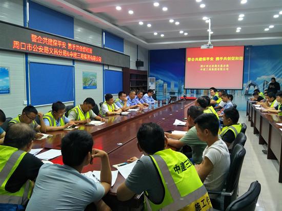 5月22日,周口市公安局文昌分局联合中建三局周口项目部开展“警企共建”活动,文昌分局治安大队、中建三局周口项目部全体管理人员、项目各分包单位负责人及部分农民工代表等参加活动。