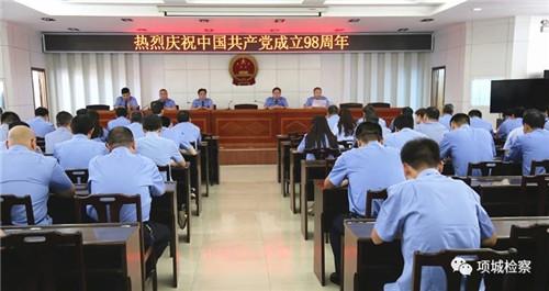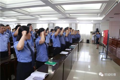 “我志愿加入中国共产党,拥护党的纲领,遵守党的章程,履行党员义务,执行党的决定,严守党的纪律,保守党的秘密,对党忠诚,积极工作,为共产主义奋斗终身,随时准备为党和人民牺牲一切,永不叛党。”为庆祝建党98周年,强化党员干警的党性观念,激励党员干警奋发有为、干事创业的激情,7月1日上午,项城市检察院组织全体党员干警重温入党誓词。