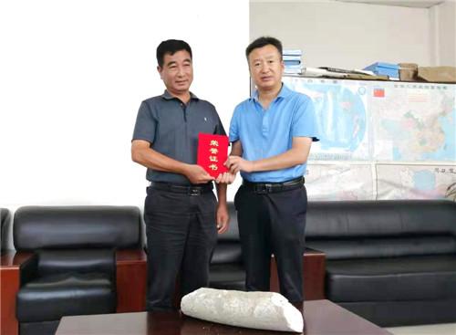 8曰22日上午,当周口天明城社区主任李建迈进周口市博物馆的门,将港区内出土的一截古象牙化石交到文物专家手里,让专家们惊呆了。专家们简直不相信自己的眼睛。市博物馆馆长周建山称,该象牙化石在周口市区尚属首次发现,对研究豫东南地区地质史上水陆分布情况、气候变迁及大型古生物演化史提供了新标本,具有重要的科学研究价值,同时对于认证周口市区在远古时代也是亚洲象活跃地区具有划时代意义。市文物部门高度赞扬了李建对于古文物保护的义举和贡献,并向他颁发了收藏证书。近日,市博物馆将对这一古象牙化石进行展出。