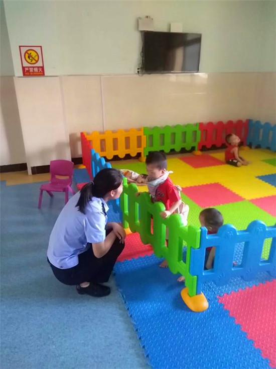 活动中,福利院的工作人员给党员民警们讲解了福利院的基本情况。目前,周口福利院的儿童有120名左右,他们大多数是因为残疾或是疾病被遗弃而被社会各界送到福利院的弃婴。在征得福利院负责人的同意后,民警们拿出提前准备的小零食,并跟小朋友们一起玩耍、嬉戏,大家也情不自禁的抱起这些可爱的孩子。活动期间,党员民警们和这些孩子们相处融洽,气氛温馨,还跟孩子们合影留念。
