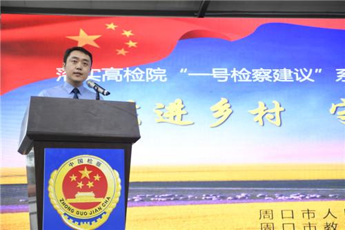 为进一步贯彻落实最高人民检察院“一号检察建议”,构建和谐家园,创造良好育人环境,切实防止性侵未成年犯罪的发生,保护未成年人健康成长,预防校园霸凌。9月12日上午,周口市检察院联合周口市教育体育局、共青团周口市委在商水县瓦房庄行政村举行全市检察机关“送法进乡村,守卫美丽童年”法治扶贫活动。
