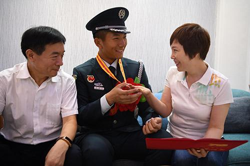 孙先振鼓励赵翔宇,能参加新中国成立70周年大阅兵,不仅仅是周口军分区的骄傲,也是我们周口的骄傲,是我们周口军分区广大官兵学习的楷模,一定要继承和发扬“阅兵精神”,为实现中国梦和强军梦贡献自己的力量。赵翔宇表示,他将以此次参加阅兵为动力,不忘初心,牢记使命,尽职尽责,干好本职工作。