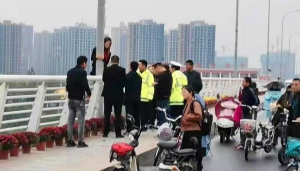 当日上午8时许,市公安局交通管理支队三大队民警张逢申带领刘赛男、腾腾正在大庆路与七一路交叉口的油田岗执勤,热心群众跑来反映称:“有人在大庆路沙河桥上正准备跳河轻生。”接到警情后,3人迅速飞奔往事发现场发现,一名年轻女子已经跨过大桥护栏,双手正抱着桥边的一个路灯灯柱哭泣,围观群众都在对她进行劝解。“当时情况特别紧急,如果不及时处理,女子随时都有跳下去的可能。大庆路桥面离地面较高,一旦跳下,生还的几率几乎为零。”民警张逢申说。