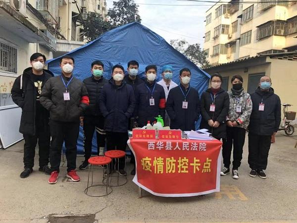“疫情不灭,我们不退!”新冠肺炎疫情防控阻击战打响以来,西华法院积极响应上级号召,院长王赞华亲自部署,成立了疫情防控党员先锋岗、自愿者服务岗等防控站点,全天候加强对过往人员的监督检查,有效斩断了疫情的蔓延。