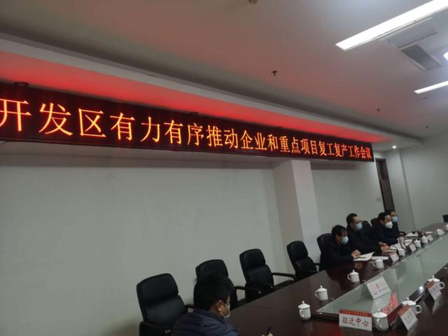 2月21日,开发区召开开发区有力有序推进重点项目复工会议,就重点项目复工进行安排部署。开发区党委书记王文峰,管委会主任刘涛,管委会副主任李鹏、于杰等出席会议。各办事处、开元路产业集聚区、区直有关部门负责人参加会议。