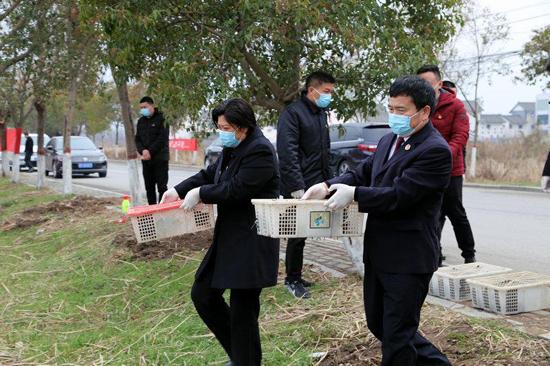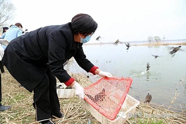 2月28日下午4时许,淮阳区检察院检察长严新爱、第四检察部检察官与淮阳区自然资源局公安民警一道将查获的108只国家“三有”保护动物——黑水鸡全部放生于淮阳东湖。经过检疫、消毒,当10箱黑水鸡被抬下车,放在龙湖边,众人打开箱子,黑水鸡飞快地从里面跳出来,顺着水面划向远方。“飞吧,你们自由了!”大家齐声说着祝福话,严新爱检察长见一只黑水鸡被箱子绊住脚,双手将其托起放生。