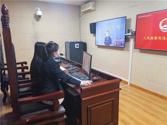 “我们沈丘县检察院第一检察部检察人员。目前正处于疫情防控特殊时期,我们对你进行远程提审。”疫情防控工作仍在继续,司法办案从未停止。3月2日上午,在远程提审室,第一检察部员额检察官韩倩和书记员正在对关押在沈丘县看守所的犯罪嫌疑人王某某进行远程提审。当天,仅用了20多分钟,便完成了一起审查起诉案件的提审。而在此之前,由于与看守所距离较远,加上交通堵塞等因素,提审一名犯罪嫌疑人通常需要半天的时间。