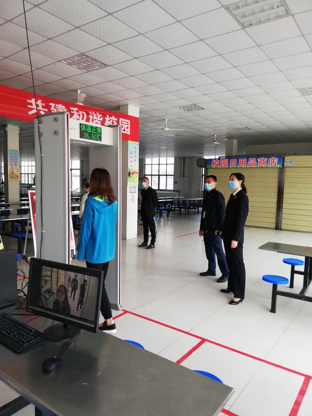 督导组一行严格按照河南省和周口市高三年级开学条件的具体标准对教室、餐厅、宿舍等人员易聚集场所进行了检查,了解到各所学校都谨遵要求部署防控措施:学生教室由原来的大班分为30人为单位的小班,拉大课桌之间的距离;宿舍由8人间改为4人间的小寝室,管理人员定时消毒,学生需按地标线排队出入宿舍;食堂分A、B组单人、单桌、单向错峰就餐,餐具统一高温消毒,留存每日食物样本;每日体温三测量,形成健康状况表格层级上报……