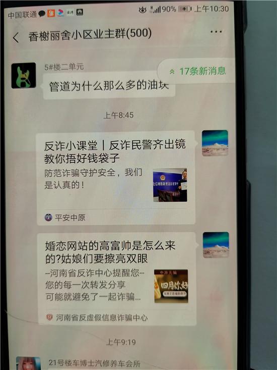 为了方便对辖区公共场所的管理,给市民提供一个直接交流的平台,疫情期间,太昊路公安分局黄淮市场警务室创新警务模式,“分门别类”地在辖区内建立了25个“公共场所业主管理交流群”和“居民群众交流平台”,邀请辖区居民加入该群,形成了一个透明、便捷、快速的“接警平台”,也就是民警和老百姓口中的移动“微警务室”。群众有困难、有问题都可以在这群里第一时间得到回应。