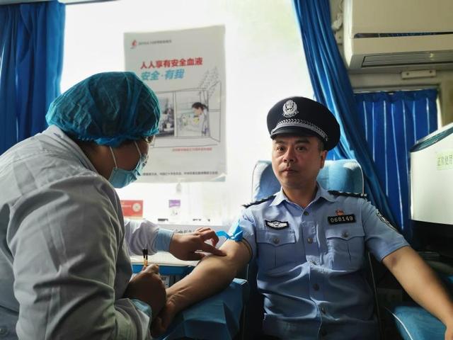 “如果算上这一次,足足是109次了。”在义务献血现场,辅警朱荣伶的“献血”次数之多让人感到惊讶。今年47岁的朱荣伶原来在新疆一家物业公司上班,2016年到城北公安分局社区大队当辅警。他第一次献血是2008年,那是在新疆一次全民献血活动中,也就是从那次献血后让他“一发不可收”。严格意义上来说,朱荣伶无偿奉献的是“机采血小板”,如果条件允许的情况下一个月可以献两三次之多,每次献血小板时血站都是有记录可查的。有需要时血站工作人员也会主动联系他,就在前不久他刚刚献过一次血小板。“109次献血不是句号,如果有需要我随时撸起袖子继续奉献爱心。”朱荣伶话语不多却正能量满满。