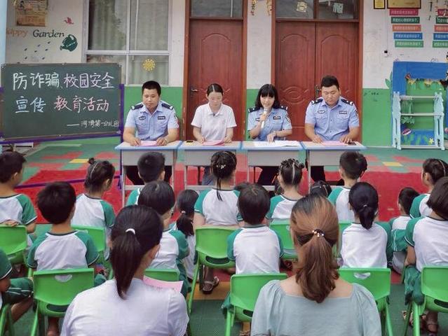 昨日下午,吴台派出所指导员朱浩宇带队,走进河湾第一幼儿园,以开展“反诈”宣传、确保校园安全为切入点,结合实际案例,给全体师生及学生家长讲解了防范电信网络诈骗、交通安全、消防安全、防溺水等方面的知识,营造了学校“反诈”宣传浓厚氛围。