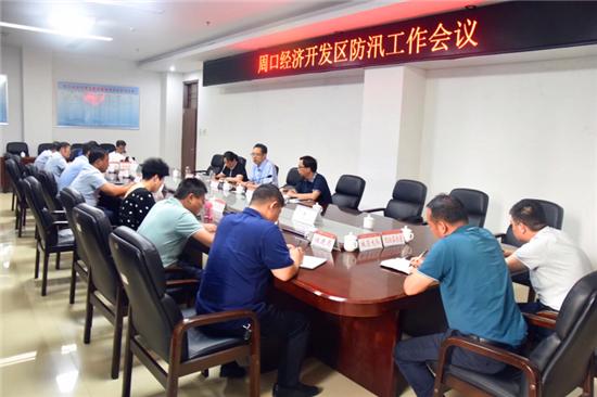 7月15日,开发区党委书记王文峰主持召开防汛工作专题会议,研究部署近期防汛工作。开发区副调研员赵愚、王静等参加会议。