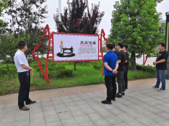 大家先后在廉政人物、廉政故事、廉政格言等标牌前驻足观看,接受党风廉政建设教育。
