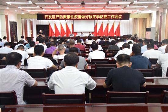 8月4日,开发区召开严防聚集性疫情做好秋冬季防控工作会,传达国务院、省、市严防集聚性疫情做好秋冬疫情防控工作会议精神,安排部署疫情防控工作。开发区党委书记王文峰主持会议,管委会副主任谷静、副调研员王静出席会议。
