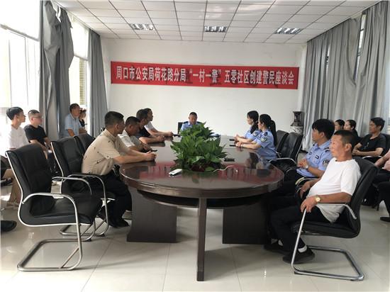 最后,民警为参加座谈会的居民代表和物业人员发放了宣传单页,并邀请他们关注了4个微信公众号,加入了“警民一家亲”微信群,动员大家纷纷参与到创建“五零”社区的活动中来。“根据市公安局的统一部署,荷花路公安分局积极行动,迅速组织民警开展大走访、大排查、大化解、大整治行动,力争创建更多的‘五零’平安村居,力求实现‘基础牢、出事少、治安好、党和人民满意’的工作目标。”周口市公安局荷花路公安分局社区警务大队教导员魏光辉说。
