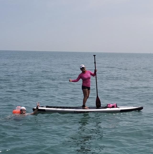 中流浪急,当齐心协力,劈波斩浪,奋力前行。为了确保安全,在大海中不迷失方向,队员们利用导航船进行保驾护航,确保顺利接力,成功游向彼岸。