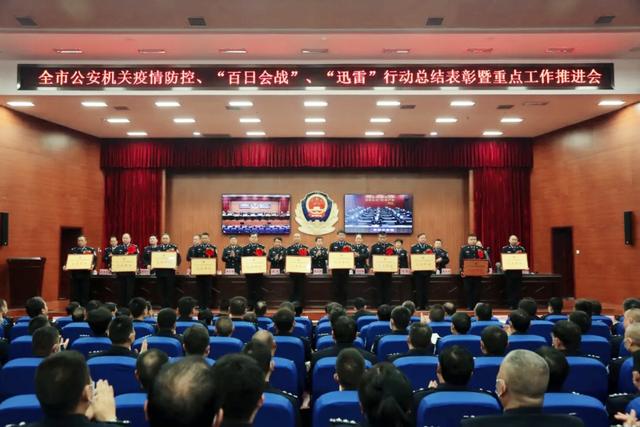10月30日,市公安局召开全市公安机关疫情防控、“百日会战”、“迅雷”行动总结表彰暨重点工作推进会,会议通报讲评了“百日会战”、“迅雷”行动整体情况,安排部署了下步打防刑事犯罪重点工作,宣读了关于对疫情防控、“百日会战”、“迅雷”行动先进单位和个人的表彰决定并对先进单位和记功民警代表进行隆重表彰。副市长,市公安局长张元明出席会议并讲话。