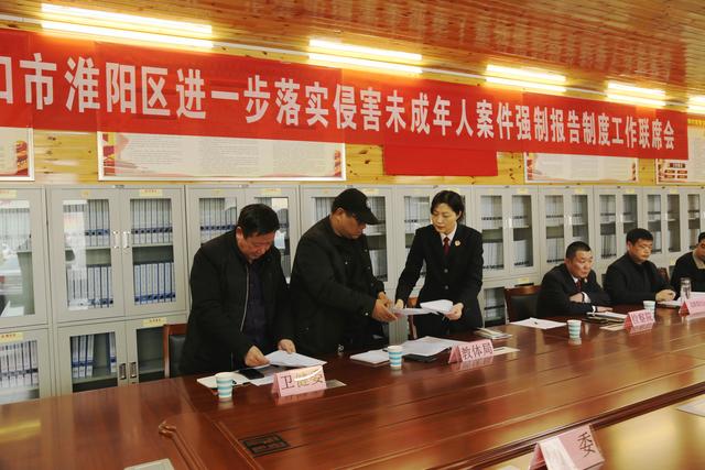 为切实加强对未成年人权益的司法保护,进一步落实《强制报告制度试行意见》,日前,周口市淮阳区检察院联合区监委、区公安局、区司法局、区教体局、区民政局、区卫健委、区交通局、区团委、区妇联等10家单位召开落实侵害未成年人强制报告制度工作联席会。