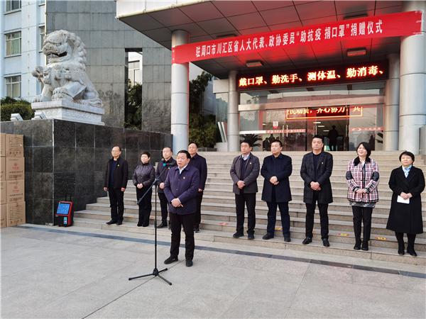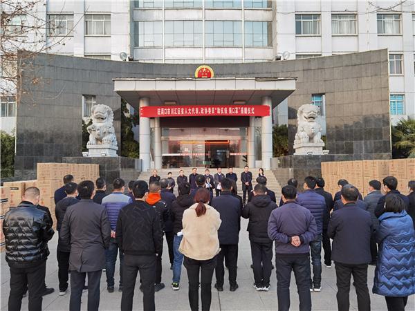 在全省“两会”召开前夕,1月14日下午,驻周口市川汇区省人大代表、政协委员献出爱心,捐赠260万只口罩助力疫情防控工作。