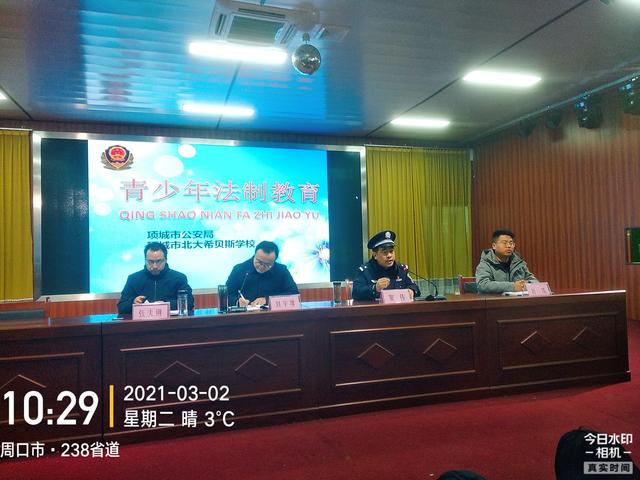 为进一步加强青少年法治教育宣传工作,预防未成年人违法犯罪,避免广大学生、家长受到电信诈骗,3月2日上午,项城市公安局东方派出所组织民警走进项城市北大希贝斯学校,为该校师生上了一堂生动的法制课。