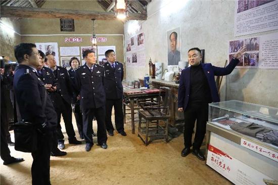与此同时,在岗张村支部旧址门前,面对庄严的党旗和警旗,该县公安局政办室主任邱亚龙带领全体党员民警庄严地高举右拳,重温了入党、入警誓词。