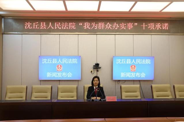 为扎实开展政法队伍教育整顿,促进司法为民、公正司法,实现“努力让人民群众在每一个司法案件中感受到公平正义”的目标,根据政法队伍教育整顿工作部署和上级法院要求,沈丘县法院于近日召开新闻发布会向社会公开“我为群众办实事”十项承诺。