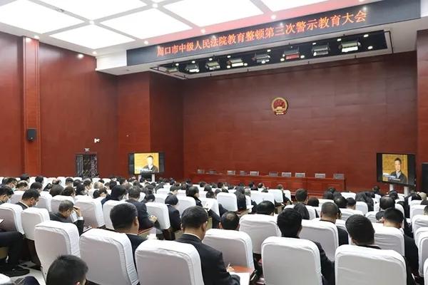 3月31日,周口中院组织全体干警利用夜间学习的时间召开教育整顿第三次警示教育大会。会上,全体干警集中观看了专题警示教育片。片中的违纪违法典型案例从思想根源深刻剖析了违纪违法党员干部道德防线不牢、私欲膨胀,把党和人民赋予的权利当成谋私的工具,最终走上不归之路的沉沦轨迹,教训惨痛,发人深省。给观看的每名干警带来了强烈的视觉冲击和心灵震撼,进一步警醒广大干警要坚守廉洁底线,不忘初心,牢记使命,不断增强拒腐抗变的思想认识和能力。