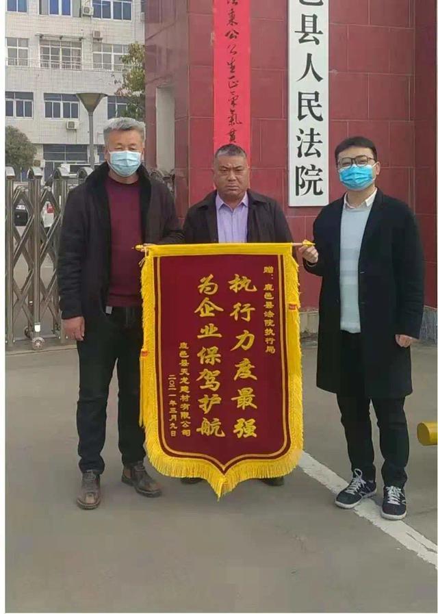 鹿邑县某建材公司与胡某商砼买卖合同一案,双方签订了价值23万多元的商砼买卖合同,但是胡某没有按照合同约定付款。3月2日,鹿邑县人民法院执行立案系统受理后,执行法官当天立案、当天发起查控措施、当天冻结被执行人财产,当天就执结了案件,赢得了涉案企业赞誉,并为执行法官送来了一面书有“执行力度最强 为企业保驾护航”的锦旗表示感谢。