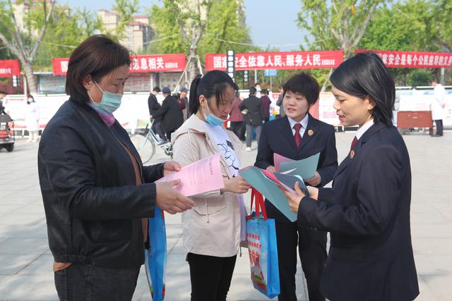 4月15日,扶沟县检察院组织干警到人民公园广场,开展国家安全教育普法宣传活动,为群众讲解国家安全知识。