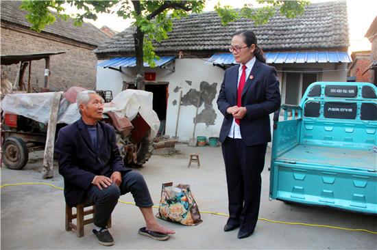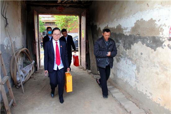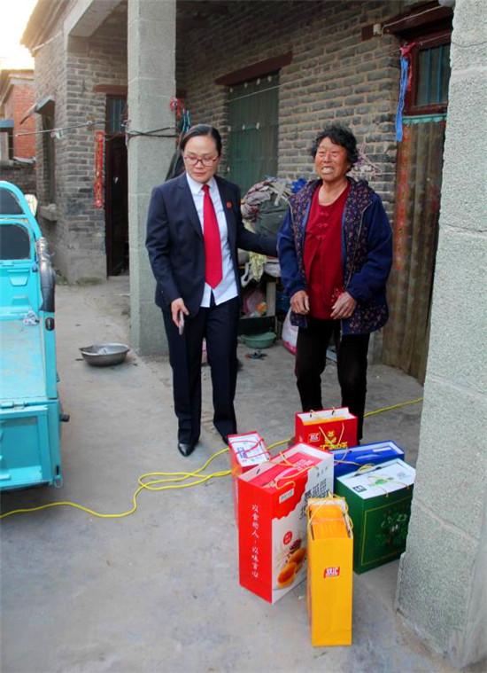 杨宏亚考虑到原告一家家庭贫困、生活困难,特意自费买来生活用品并贴心地送到郭某家中,鼓励郭某全家勇敢面对眼前的困难,积极乐观生活。杨宏亚一行亲切的问候、温暖的祝福,使郭某一家人深受感动。郭某表示,有人民法官的帮助,什么都不害怕,再苦再难也要坚持下去。