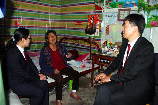 在郭某诉张某等交通事故纠纷一案中,原告郭某家人都是重度残疾,郭某本人也在交通事故中受重伤,行动不便,全家陷入困境。为减轻困难群众的诉累,让伤者早日得到赔偿款,本着“宁可法官多走路,不让群众多跑腿”的原则,扶沟法院党组成员、副院长杨宏亚带领范娜娜庭长来到原告郭某家中看望,并组织该案保险公司的代理人和事故车主来到原告郭某家中调解。