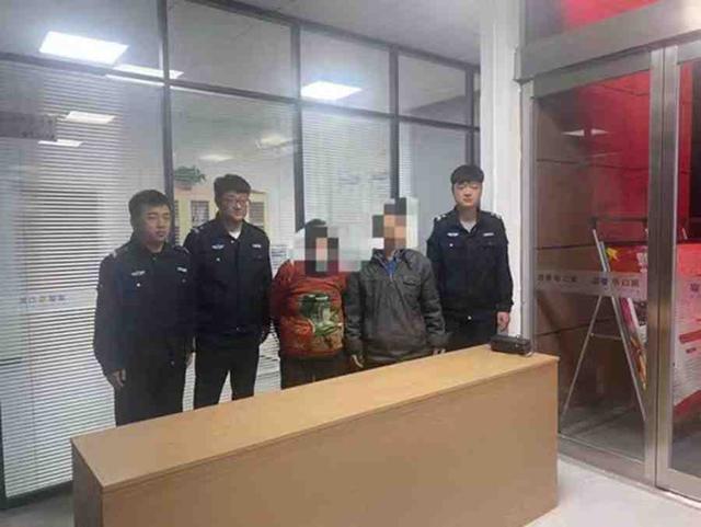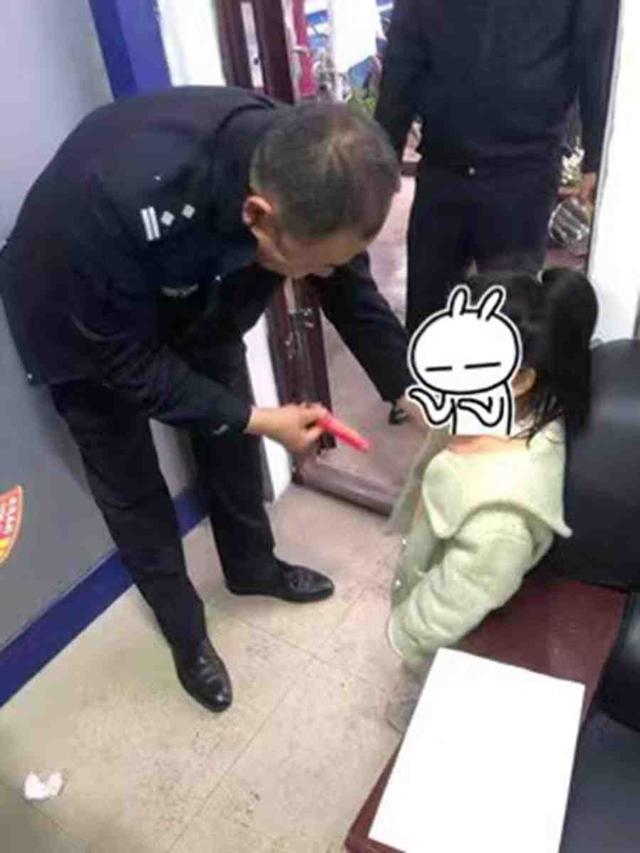 图二民警在安抚走失小女孩图三被找回的妇女及丈夫与民警在一起