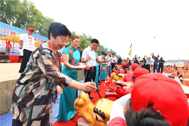 领导和嘉宾为龙舟点睛