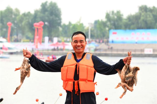 传统龙舟赛捕鸭表演