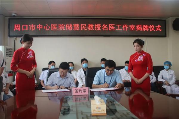 6月19日上午,周口市中心医院“储慧民教授名医工作室”揭牌仪式,在行政楼3楼会议室举行。宁波市第一医院储慧民教授,周口市中心医院院长于彦章及相关科室医护人员参加揭牌仪式。仪式由周口市中心医院副院长张晓阳主持。