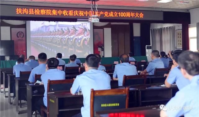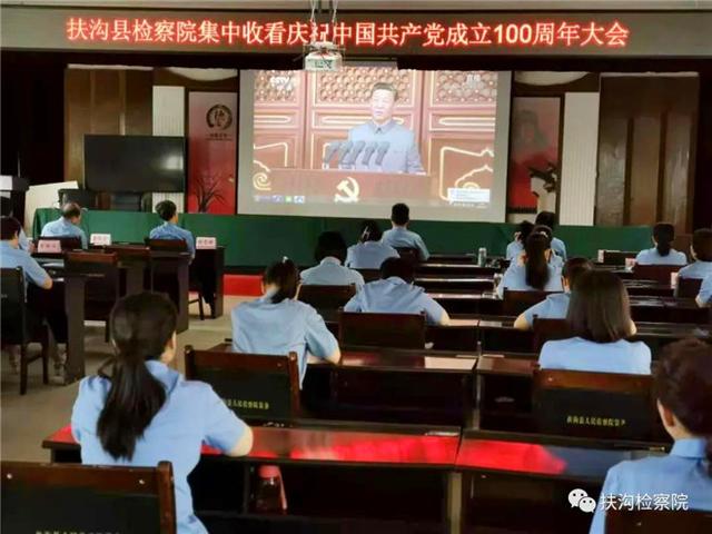 赓续百年初心,凝聚奋进力量。7月1日8时,庆祝中国共产党成立100周年大会在北京天安门广场隆重举行。扶沟县检察院组织党员干警在六楼会议室集中观看庆祝中国共产党成立100周年大会盛况直播,并深入交流学习体会和感受。