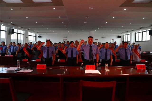 颁发仪式在庄严的国歌声中拉开帷幕,参加仪式的党员干警齐唱国歌。会议表彰了优秀党员、先进个人、先进党支部、先进集体,并向12位党龄达到50周年老党员颁发了“光荣在党50年”纪念章。