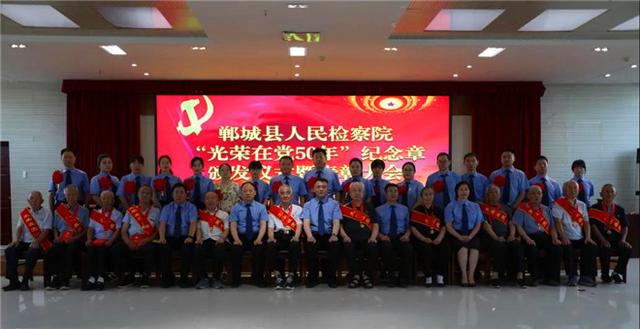 为庆祝中国共产党成立100周年,激励各党支部和广大党员奋发进取、创先争优,6月30日上午,郸城县人民检察院召开“光荣在党50年”纪念章颁发仪式暨表彰大会,全体干警参加会议。