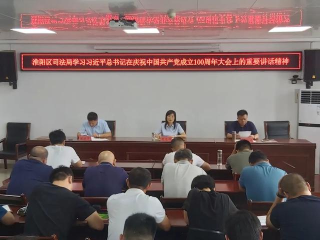 7月12日,淮阳区司法局召开全体会议,学习贯彻习近平总书记在庆祝中国共产党成立100周年大会上的重要讲话精神,研究部署贯彻落实工作。