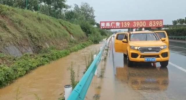 周口市公安交管支队宁洛高速大队教导员周国芮向记者介绍说,目前,西向漯河辖区506公里+100米处,地势地洼,周边雨水倒灌高速主路约1公里左右,高速养护部门正在紧急抢修。
