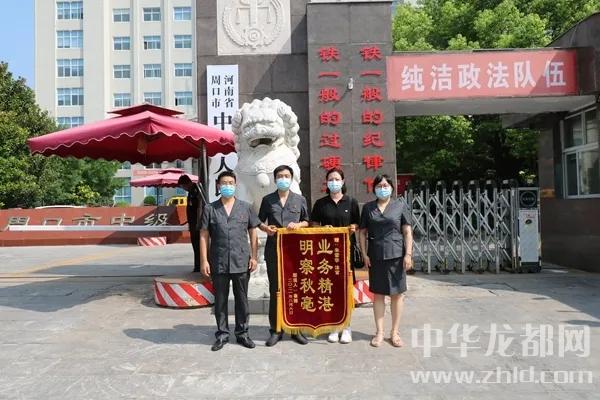 8月6日上午,淮阳信访局职工鲁某冒着酷暑来到周口市中级人民法院,将“明察秋毫、业务精湛”的锦旗送到了民六庭朱雪华法官手中。鲁某说:“感谢周口市中级人民法院的法官,给了我公正的裁判”。