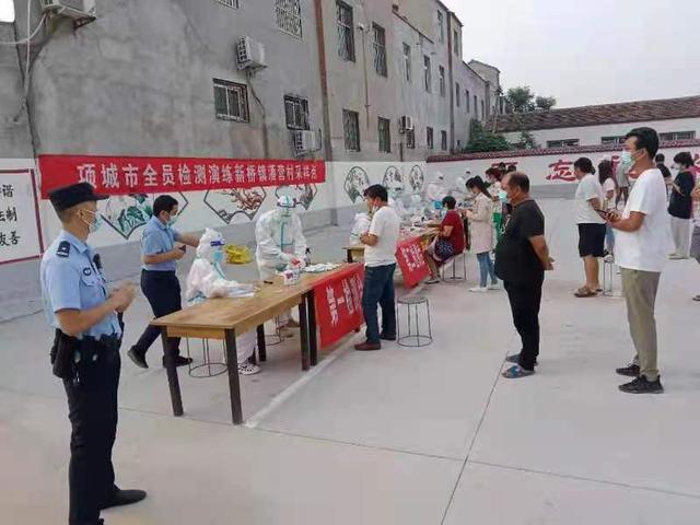 宋磊(左一)在项城市全员核酸检测现场维持秩序
