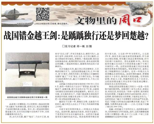 这个系列的每一篇文字稿件,记者写过之后,我都会看看、改改,怕有专业上的失误,还会让周馆长再把关,可以说,他给我们提供了最专业的支持。每一次,他都会改动几处,有时是文中的失误,有时为了一个器物的称谓更简洁而准确,有时是为了描述的词语更准确、更贴切……比如,写越王剑时,他建议用“战国错金越王剑”,他认为每件器物上加上时代更规范,也会更有吸引力。写宋代白釉剔刻花瓷罐时,他建议去掉“剔”和“瓷”字,这样读起来更简洁、语感更好一些等等。
