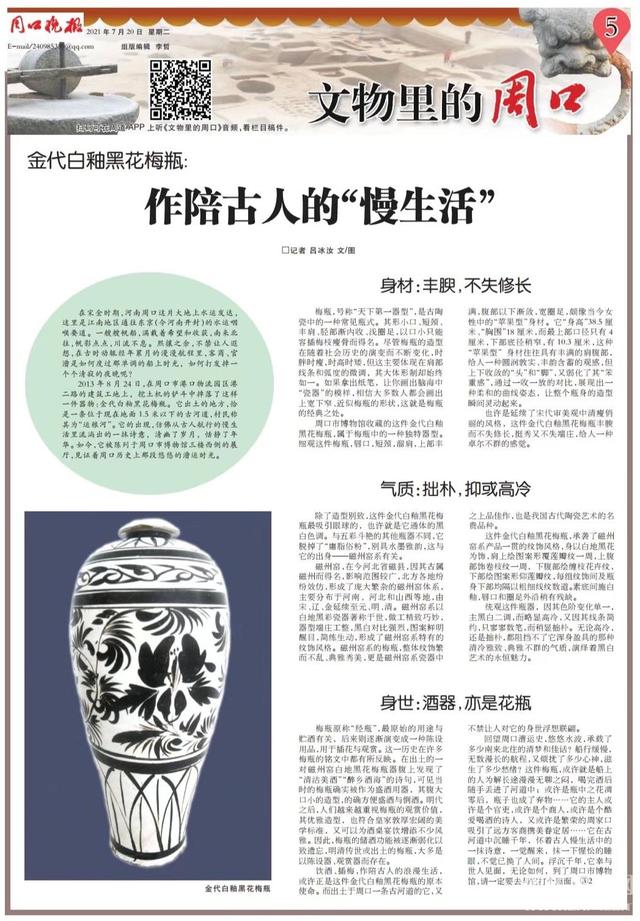 这一天,周建山馆长带着我们在博物馆里走过一个又一个展厅,一次又一次地在一件件文物前站定,用他专业而又生动的语言给大家作介绍。大家在他的幽默里放松下来,放松到把自己还原成一个参观者,而不是一个采访者。因为大家深深明白,只有从作为一个有心的参观者开始,去学习、去感悟、去探询、去深究、去挖掘,才能去了解一件文物的前世今生,才会真正地感知一个磨盘、一盏灯、一只瓶、一个枕的生命温度。